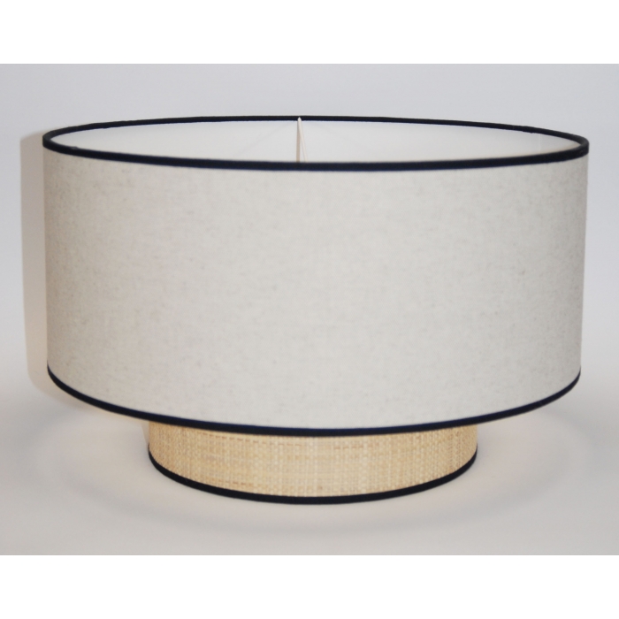 Abat-jour pour suspension avec 2 abat-jours imbriqués : en tissu de toile de coton couleur lin et rafia.