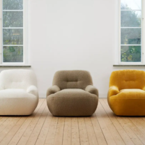 Fauteuil UMA FAITES VOTRE CHOIX ENTRE DES PIEDS RONDS CLASSIQUES ET DES PIEDS PIVOTANTS ET ÉLÉGANTS PLUSIEURS CHOIX DE TISSUS DISPONIBLES DÉLAI DE LIVRAISON 8 SEMAINES