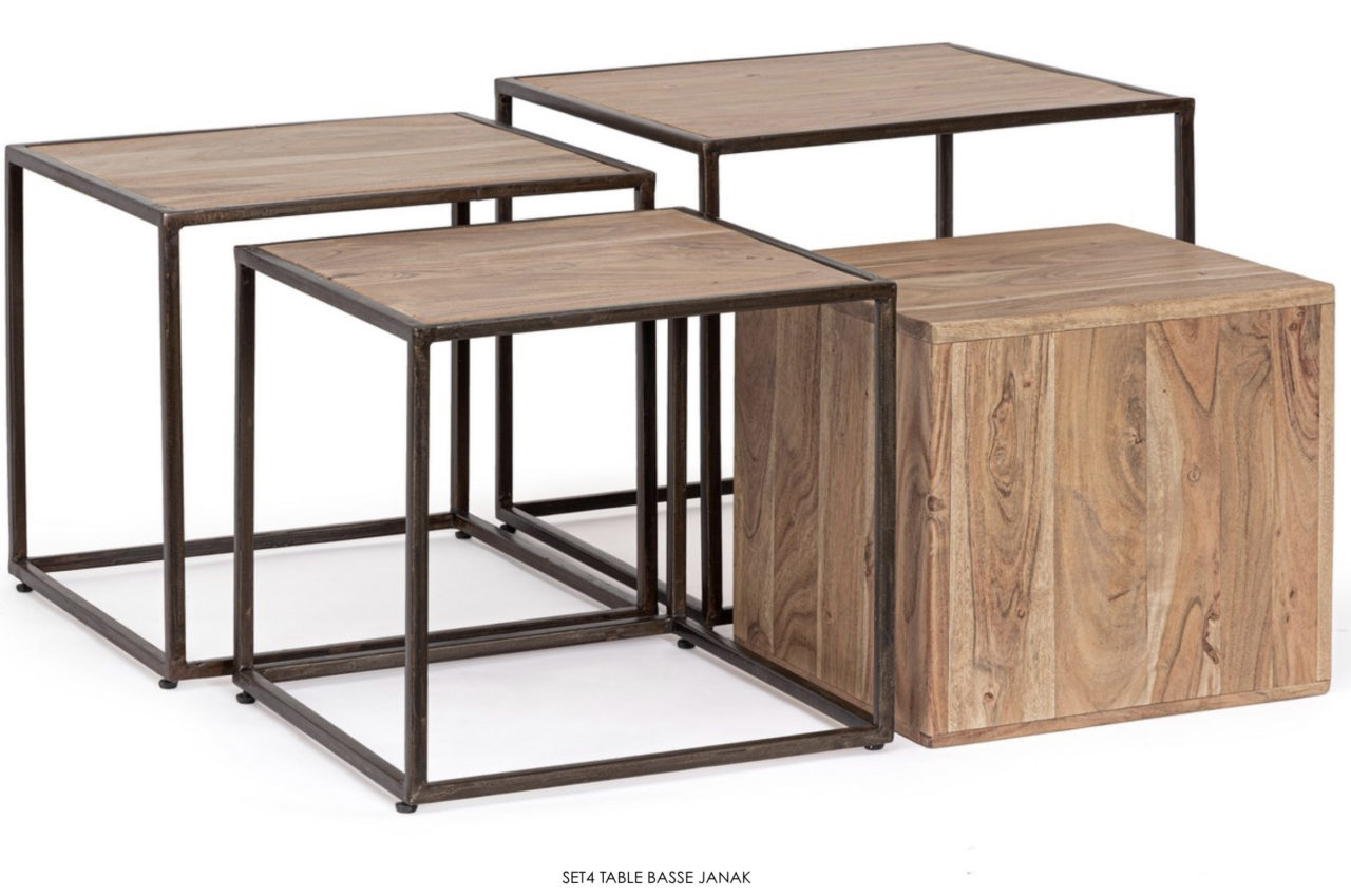 SET DE 4 TABLES BASSE JANAK Structure en acier avec plateaux en bois d’acacia Voir l'SET DE 4 TABLES BASSE JANAK