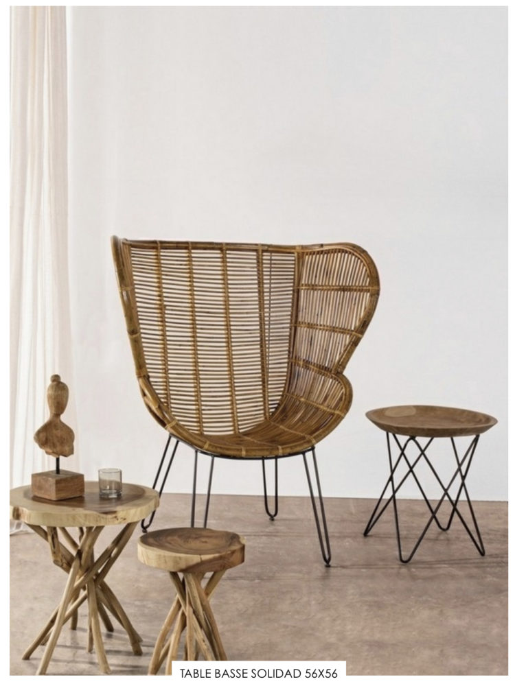 TABLE BASSE SOLIDAD Plateaux en bois de munger et pieds en branches de teck DimensionsL56 P56 H56 cm Voir l'TABLE BASSE SOLIDAD